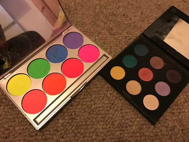Kryolan Uv palette all colours used a few times. £10 (sold) , Makeup forever 9 artist shadow palette used once £15